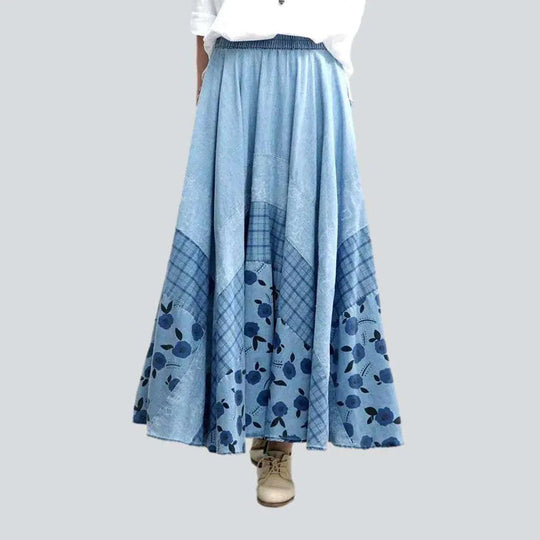 Artistic high-waist boho denim skirt