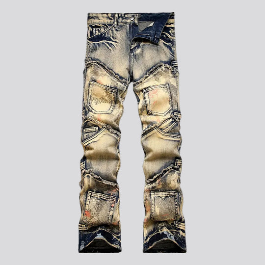 Vintage patchwork skinny men's jeans