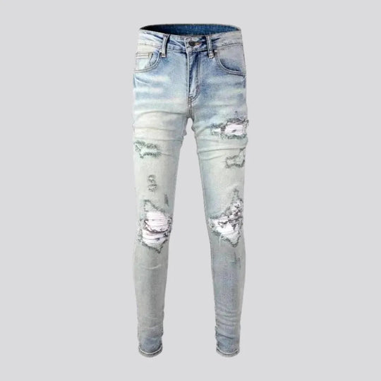 Vintage patchwork skinny men's jeans